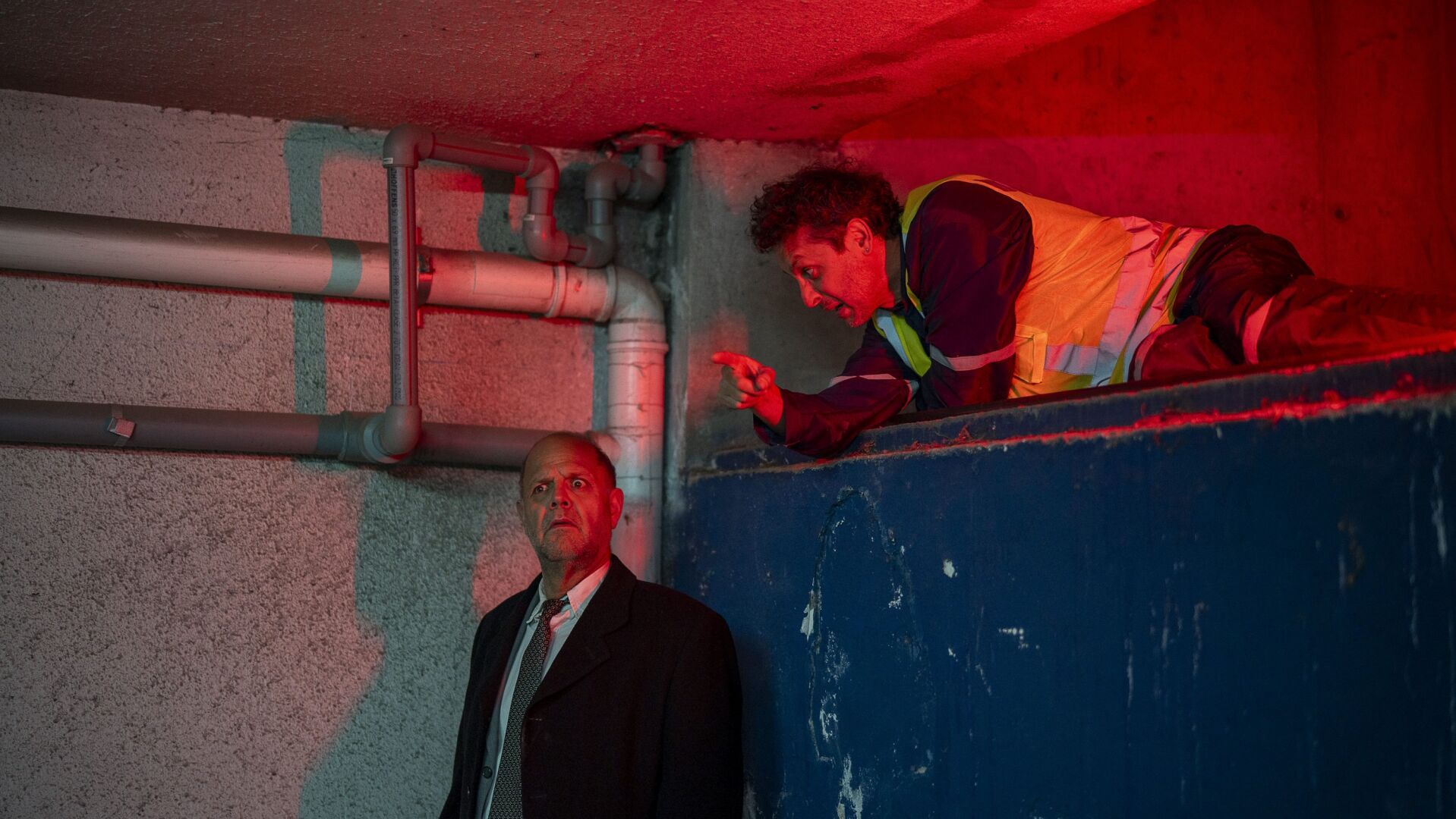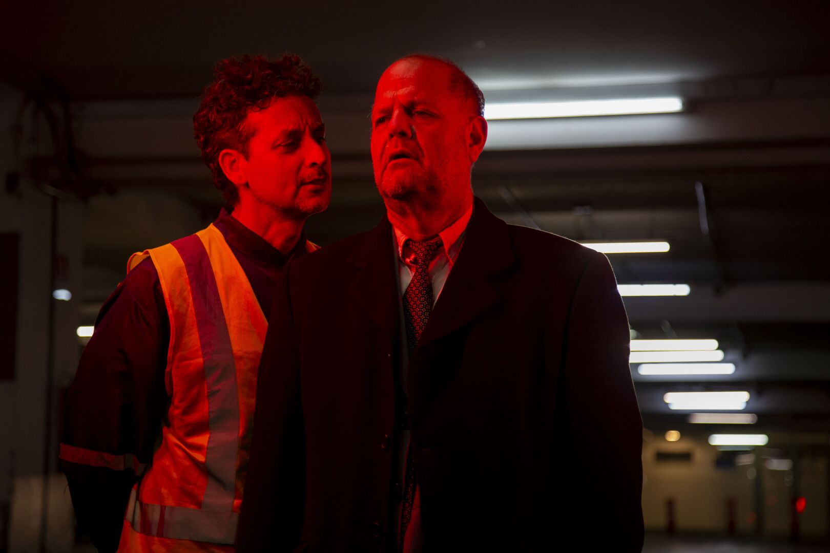 El director de la compañía de trayectoria Teatro La Puerta, Luis Ureta, ha querido poner el acento en las capacidades lúdicas y dramáticas del juego actoral de Sergio Piña y Carlos Ugarte: “Ambos tienen un enorme registro que pasa desde el humor más desatado, hasta situaciones de mayor complejidad y hondura en lo que yo llamo ‘comedia ominosa‘. Todo esto nos permite entregar una puesta en escena donde los registros son muy amplios, arrojados y valientes, que pueden generar en los espectadores intensas emociones y un espacio de reflexión. Se empiezan a configurar planos de escritura y de posibilidad de análisis. Lo más cercano, dado que se situaba en el subterráneo de un mall, es todo lo que significa ir descendiendo. Está la referencia también de los personajes: Vigilante y Andante, por Virgilio y Dante de “La divina comedia”, y su descenso al infierno en este templo del consumo”, concluye.